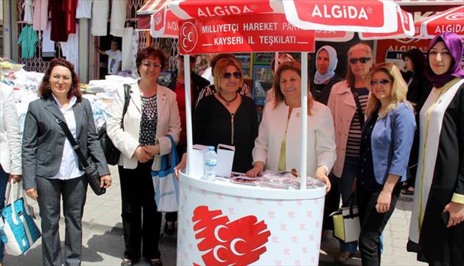 MHP Kayseri Kadın Kolları Başkanı Serap Şule Kalın önderliğinde kadın kolları üyeleri, Danışmentgazi ve Fevzi Çakmak Mahalleleri'nde kurdukları stantla seçim çalışmalarını sürdürdü. Vatandaşlara çeşitli hediyeler ile Genel Başkan Devlet Bahçeli'nin beyannamesini dağıtan kadın kolları üyeleri vatandaşların desteğini istedi. İl Kadın Kolları Başkanı Serap Şule Kalın, seçime günler kala çalışmalarına hız verdiklerini ifade ederek, Seçim çalışmalarımıza seçime 25 gün kala daha fazla hız verdik. Şehrin çeşitli bölgelerinde özellikle halk pazarlarının yoğun olduğu bölgelerde stant açmak suretiyle, adaylarımızla pazar yerlerini kanalize etmek suretiyle pazar yerlerine stant açarak halkımızla bütünleştik. Bugünkü etkinliğimizde öncelikle sabah saatlerine kadın platformu derneğinin Milletvekilimiz Meral Akşener'le ilgili asılsız isnat edilen kaset iddialarıyla ilgili olarak vekilimizin sayın bakanımızın arkasında durmaları konusundaki basın açıklamasına parti olarak destek verdik. Onun akabinde Fevzi Çakmak Mahallesi'ndeki halk pazarına giderek vekil adaylarımızla beraber halkımızla ve esnafla bütünleştik şeklinde konuştu.
