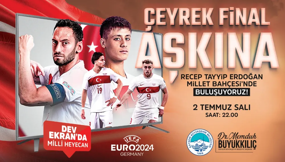 Büyükkılıç, tüm Kayserilileri milli gurur ve heyecanı yaşamak için Millet Bahçesi’ne davet ederek, “2 Temmuz Salı günü saat 22.00’de oynanacak milli maçımızı Millet Bahçemizde, Büyükşehir Belediyemiz tarafından hazırlanacak dev ekranda izlemeye ve tek yürek olmaya davet ediyoruz” diye konuştu.