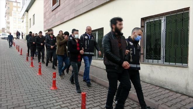 Operasyon da gözaltına alınan 17 kişi Kayseri'de geçirildiği sağlık kontrolünün ardından adliyeye sevk edilirken, 1 kişi de gözaltına alındığı ilde adli mercilere çıkarıldı.