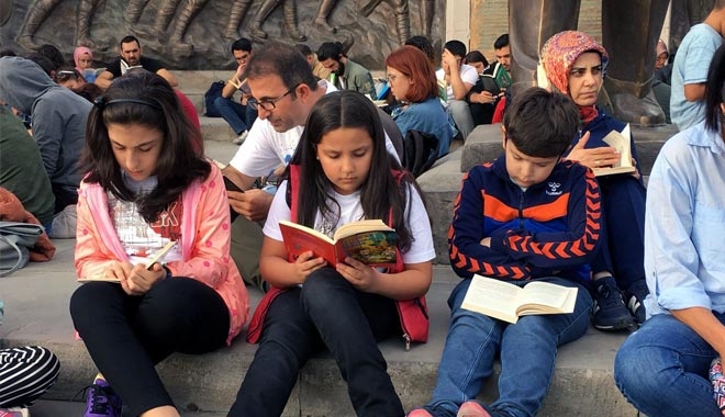 Cumhuriyet Meydanı´nda minderini ve kitabını alarak gelen vatandaşlar burada oturarak kitaplarını okudular. Etkinlik kapsamında köy okullarına bağış yapmak için kitap toplama etkinliği ve engelli vatandaşlar için de sesli kitap okuma etkinliği de yapıldı.