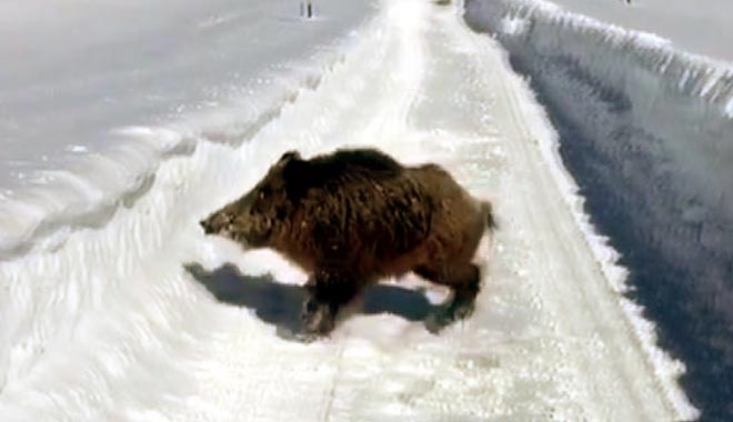 Tomarza´dan Aslantaş köyüne yolcu götüren minibüsün önüne, köye yaklaşık 5 kilometre kala 2 yaban domuzu çıktı. Kar kalınlığının yarım metreyi aştığı bölgede yola inen domuzlar, bir süre aracın önünde koştu. Yolcular tarafından cep telefonu kamerası ile görüntülenen domuzlar, daha sonra karla kaplı araziye girerek gözden kayboldu. Kar nedeniyle aç kalan domuzların ilçenin kırsal bölgelerinde yerleşim alanlarına kadar indiği belirtildi.