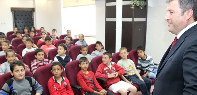 Başkan Palancıoğlu, konuşmasının ardından miniklerin sorularını cevaplarken, kendilerinden okullarında derece ile mezun olmaları sözünü aldı.