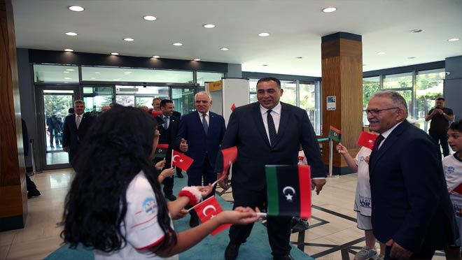 Büyükşehir Belediye Başkanı Dr. Memduh Büyükkılıç, Kayseri’nin kardeş şehri Misrata Belediye Başkanı Mahmud Mohamed Sigutri ile beraberindeki heyeti mehteran takımıyla birlikte Türk ve Libya bayrakları ile karşıladı.