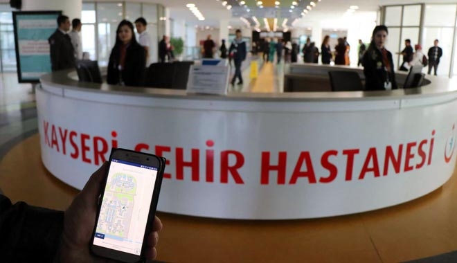 Kayseri Şehir Hastanesinin mobil uygulaması, tedavi için hastaneye gelecek olan vatandaşlara hem yol tarif ediyor hem de hastane içerisindeki polikliniklere kolay ulaşmasını sağlıyor.