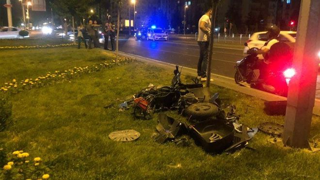 Sivas Caddesi Tuna Kavşağı'nda meydana gelen olayda, A.E. idaresindeki mobilet ile İ.F. idaresindeki 07 AC 1564 plakalı otomobil kaza yaptı. Otomobille çarpışan mobilet parçalanırken, otomobil de 50 metre sonra orta refüjdeki kaldırıma çarparak durabildi.