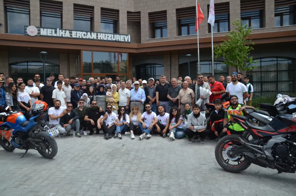Konya Büyükşehir Stadyumu'nda bir araya gelen yaklaşık 30 kişilik grup, Meliha Ercan Yaşlı Bakım ve Rehabilitasyon Merkezi'ne kadar motosiklet sürdü.