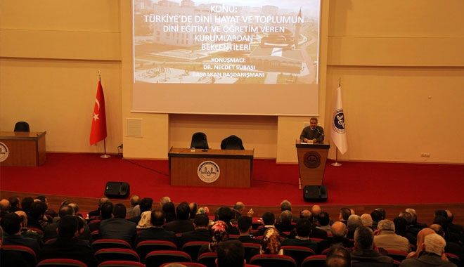 Başbakan Başdanışmanı Dr. Subaşı?Türkiye´de Dini Hayat ve Toplumun Dini Eğitim ve Öğretim Veren Kurumlardan Beklentileri? konulu konferansta davetlilere seslenirken ?15 Temmuz olaylarından sonra ülkemizdeki dini hayat ve toplumun dini eğitim ve öğretim veren kurumlardan beklentisi bizleri üzerinde düşünmeye sev ketti. Türkiye´de dini hayat konusu üzerinde çok fazla düşünmediğimiz bir konu olarak önümüzde durmaktadır. Açıkçası bu konunun üzerinde durmaktan, kendi meselelerimizi konuşmaktan çekiniyoruz. Böyle bir korku var bizde. Genel çerçeveye baktığımızda Türkiye´de belli bir çevrede Diyanet camiası var. Bu alanın dışına çıktığımızda çok sıkıntılı bir çevre ile karşılaşıyoruz. Basit bir şekilde insanların dini hayatlarını tanımlamak gerekirse, kişinin kendi hayatlarını inşa ederken dine atıfta bulunarak, dini devreye sokarak, dinin içinde kalmak çabası içinde ortaya koydukları her şeydir. Bu açıdan her şehirde dini yaşayış farklı olacaktır. Şartlarını sınırlarını bilmediğiniz dünyanın ortaya koyduğu dindarlıklar hakkında ileri geri konuşmamak lazım. Bu manada dini hayat izafi bir durum olarak karşımıza çıkmaktadır. Dini hayatın 3 temel göstergesi vardır. Bunlardan birisi inanç, ikincisi ibadet, üçüncüsü ahlaktır. Bu üçünü yani hepsini bir arada değerlendirmemiz gerekmektedir. Birisi eksik olduğunda dini hayat eksik olmaktadır. Dini hayat sembollerle, kavramlarla ve hayal gücü ile yaşamaktadır. Herhangi bir yer ve zamanda dini hayatın bu bileşen ve parçacıklarını unutmamak gerekmektedir. Bir dini cemaat veya dini yaşam söz konusu ise onların kavram ve sembollerinin nasıl olduğu ve hangi yönleriyle kamuda etkilerinin var olabildiğini gözlemlemek gerekir.? Değerlendirmesinde bulundu?