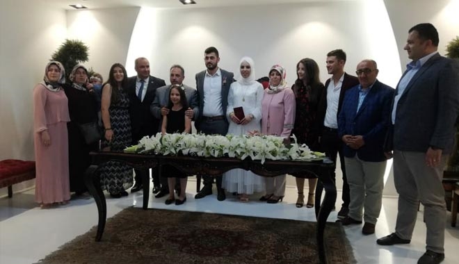 Altınkaya, nikah cüzdanını gelin Münire Gülek´e takdim etti. Nikah töreni sonrasında hatıra fotoğrafı çekildi.