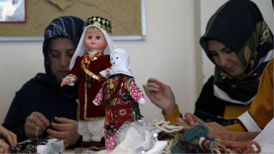 Halk Eğitim Merkezi Müdürlüğü ve İŞKUR iş birliğinde düzenlenen oyuncak bebek yapım kursuna katılan 18 kadın, çocukken oynadıkları ve tarihi 100 yıl öncesine uzanan oynar bebeği yapmak için bir araya geldi.