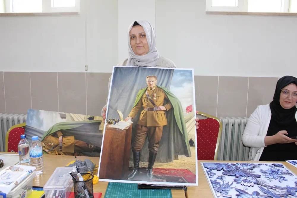 Kursiyerlerden Yasemin Tekcan da 2022'den beri kursa katıldığını ifade ederek, şu ana kadar 9 tablo tamamladığını, kursun özgüveninin gelişmesine katkı sağladığını kaydetti.
