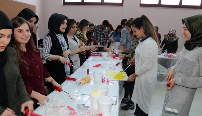 Nuh Naci Yazgan Üniversitesi (NNYÜ) Güzel Sanatlar ve Tasarım Fakültesi İç Mimarlık ve Çevre Tasarımı Bölümü öğrencileri tarafından iç ve dış mekân boyalarla çalıştay gerçekleştirildi.