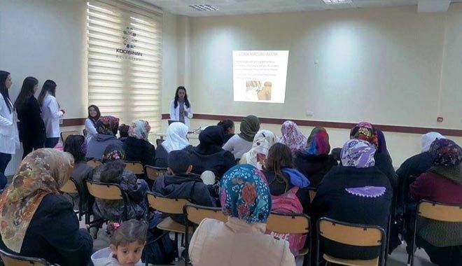 NNYÜ Sağlık Bilimleri Fakültesi Hemşirelik Bölümü Öğretim Üyesi Yrd. Doç. Dr. Zeliha Kaya Erten ile Beslenme ve Diyetetik Bölümü Öğretim Görevlisi Eda Başmısırlırehberliğinde Bölüm öğrencileri tarafından Kocasinan BelediyesiBoztepe MahallesiSemt Konağında mahallede yaşayan kadınlara,yeni doğum yapmış annelerin bakımı, yeni doğan bebek bakımı, emzirmenin önemi ve 0-5 yaş çocuk beslenmesi anlatıldı. Eğitim programı sonunda mahallede yaşayan kadın ve çocuklara çeşitli ikramlarda bulunuldu. İsteyen anne ve çocukların hemoglobin değerlerine bakıldı. Ayrıca eğitime katılan annelere bireysel olarak da beslenme konusunda danışmanlık yapıldı. Yine annelerin diyabete ve hipertansiyona yönelik değerlendirmeleri yapılarak, kan şekeri ve kan basınçları düzeyleri ölçüldü. Değerlendirme sonucu risk taşıyan bireylere doktor kontrolü tavsiyesinde bulunuldu.