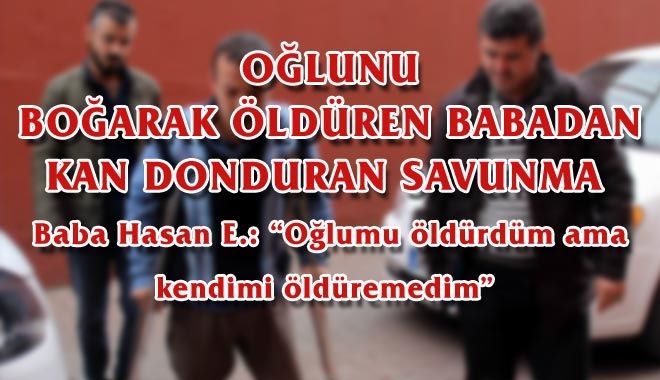 Koltuk değnekleri ile jandarma eşliğinde duruşma salonuna gelen bedensel engelli tutuklu sanık Hasan E., oturarak savunma yaptı. ?Kasten nitelikli adam öldürme´ suçundan yargılanan 4 çocuk babası sanık Hasan E., ?Haydar benim öz oğlum olur. Yüzde 55 hiperaktif raporu var. Kendisine ve çevresine sürekli zarar veriyordu. Ben hep peşinde olurdum, etraftan şikayetler geliyordu. Yolda beni çevirip, bana ?o senin çocuğun, ona sahip çık´ diyorlardı. Komşularımın mallarına zarar veriyor, ben gideriyordum. Ben de oğlumu ve kendimi öldürmek istedim. Olay günü oğlumu öldürdüm ama kendimi çok uğraşmama rağmen öldüremedim. Bileklerimi kestim. 1 metrelik urgan ile boğazını sıkarak öldürdüm. Evimi, ailemi çok seviyordum ama Haydar etrafa ve kendine zarar veriyordu. Pişmanım? diye konuştu.