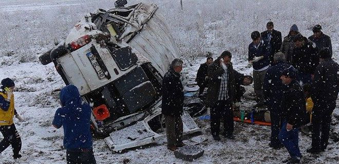Sarıoğlan ilçesine bağlı Alamettin Mahallesi`nde meydana gelen trafik kazasında ise Ü.B.`nin kullandığı 38 DC 140 plakalı servisin yoğun kar yağışı ve buzlanma nedeniyle şarampole devrildiği öğrenildi. Kazada öğretmen S.Ş. ile 8 öğrenci yaralandı. Yaralanan öğrenciler ambulanslarla hastanelere kaldırıldı.