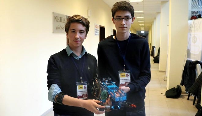 Kayseri?de 2 öğrenci, giyilebilir teknoloji ile koldan gelen kas verileri ile çalışan bomba imhada kullanmak için araç tasarladı.