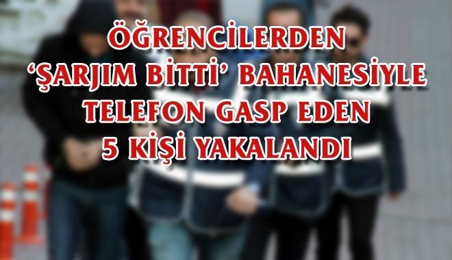 İl Emniyet Müdürlüğü Asayiş Şube Müdürlüğü Gasp Büro Amirliği ekipleri tarafından yapılan çalışmalarda, öğrencilerden ?şarj bitti´ bahanesiyle aldıkları telefonları gasp eden 2´si kadın 5 kişi yakalandı.