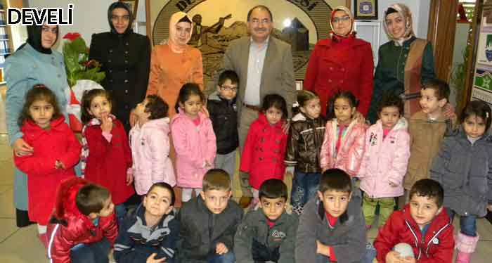 Başkan Recep Özkan, 3-4 ve 5-6 yaş gurubundan oluşan 19 öğrencinin eğitime başladığı Asiye Birdal Çocuk Akademisi öğrencilerine teşekkür ederek, çevrenin birlikte konunması gerektiğini söyledi. Başkan Özkan, ziyaret sonrasında öğrencilere birer takım boyama kitabı ve pastel boya takımı hediye etti.