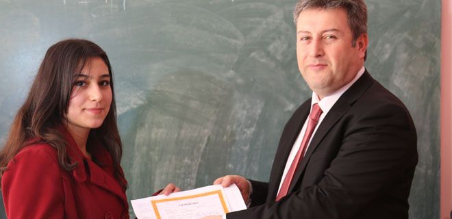 Ülke genelinde 18 milyon öğrencinin karne aldığı Talas’ta Başkan Palancıoğlu, Halide Edip Zorlutuna Kız Meslek Lisesi`nde dereceye giren öğrencilere karnelerini takdim ederek, çeşitli hediyeler verdi.