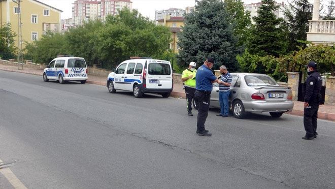 Kayseri'de polis ekipleri tarafından okul çevrelerinde yapılan asayiş uygulamasında araçlar tek tek durdurulurken, sürücüler de arandı.