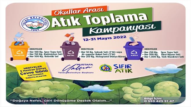 Talas Belediyesince “Doğaya Nefes, Geri Dönüşüme Destek Olalım” sloganıyla başlatılan okullar arası atık toplama kampanyası start verdi.