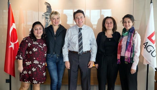 Gençlik Fabrikası Koordinatörü Zeynep Tuğçe Çiftçibaşı Güç, ünlü sanatçıya AGÜ ve Gençlik Fabrikası´nın çalışmaları hakkında sunum yaparak bilgi verdi ve ortak çalışmalar yapmayı teklif etti.