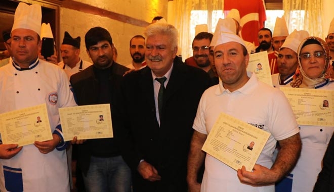 Ardından meslek yemini eden ustalar, sertifikalarını Talas Belediye Başkanı Mustafa Palancıoğlu, Melikgazi Belediye Başkan Yardımcısı Serdar Öztürk ve KESOB Başkanı Ahmet Övüç´ün elinden aldı.