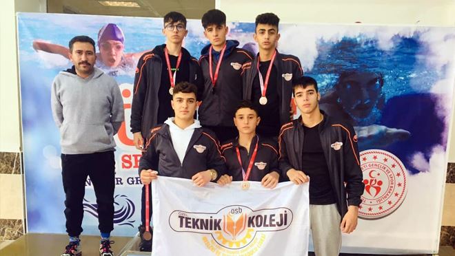 İlimizde, Gençlik ve Spor İl Müdürlüğü ve Yüzme İl Temsilciliği tarafından organize edilen Liseler arası yüzme il birinciliği, Olimpik Havuzda yapılmış ve 3 gün sürmüştü. 50 okuldan 139 sporcunun mücadele ettiği yarışlarda OSB Teknik Koleji, erkeklerde ikincilik elde etmişti. Bu derecesi ile grup müsabakalarına katılma hakkı elde eden OSB Teknik Koleji, grup müsabakaları için Rize’ye gitmişti. OSB Teknik Koleji öğrencileri, Antrenör Mehmet Erol gözetiminde grup müsabakalarında ilk 4’te yer aldı ve adını Türkiye Finalleri’ne yazdırdı.