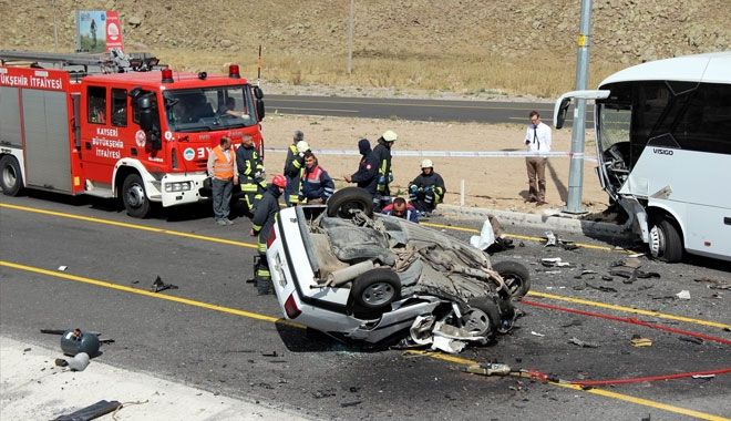Kayseri´de otobüse çarparak takla atan otomobildeki 1 kişi hayatını kaybederken, 4 kişi de yaralandı.