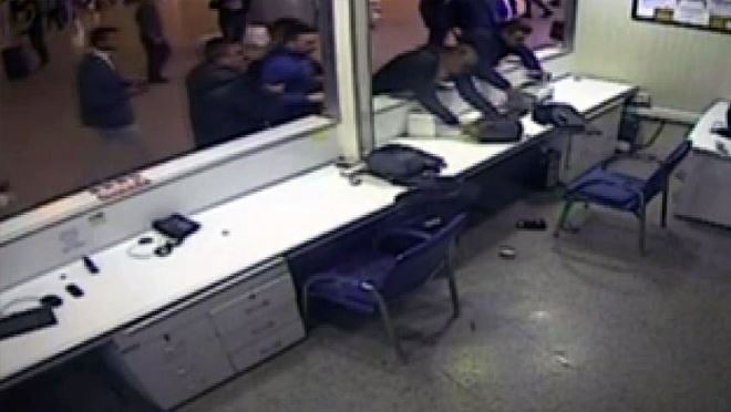 Kayseri Şehirlerarası Otobüs Terminali'nde iddiaya göre, şehir içi servis ve bilet fiyatlarını düşük tutan firmanın yazıhanesine başka bir firma yetkilileri saldırıda bulundu. Saldırı anı güvenlik kameralarınca kaydedildi.