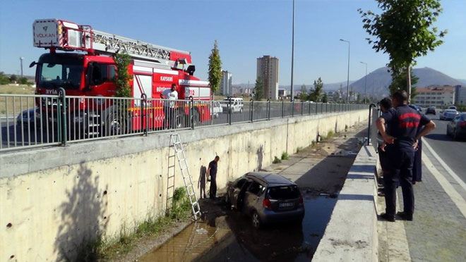 Edinilen bilgiye göre, Melikgazi ilçesine bağlı Yıldırım Beyazı Mahallesi 474. Sokak üzerinde meydana gelen trafik kazasında 42 LJ 780 plakalı otomobil, sürücüsünün direksiyon hakimiyetini kaybetmesi sonucu kontrolden çıkarak kanala uçtu. Kazada otomobil içerisinde bulunan 2 kişi yaralanırken, ihbar üzerine kaza yerine polis, itfaiye ve sağlık ekipleri sevk edildi. Yaralı 2 kişi itfaiye ekiplerinin yardımı ile kanaldan çıkarılarak hastaneye sevk edildi. Polis ekipleri de kazanın meydana geldiği güvenlik önlemi alarak, inceleme yaptı.