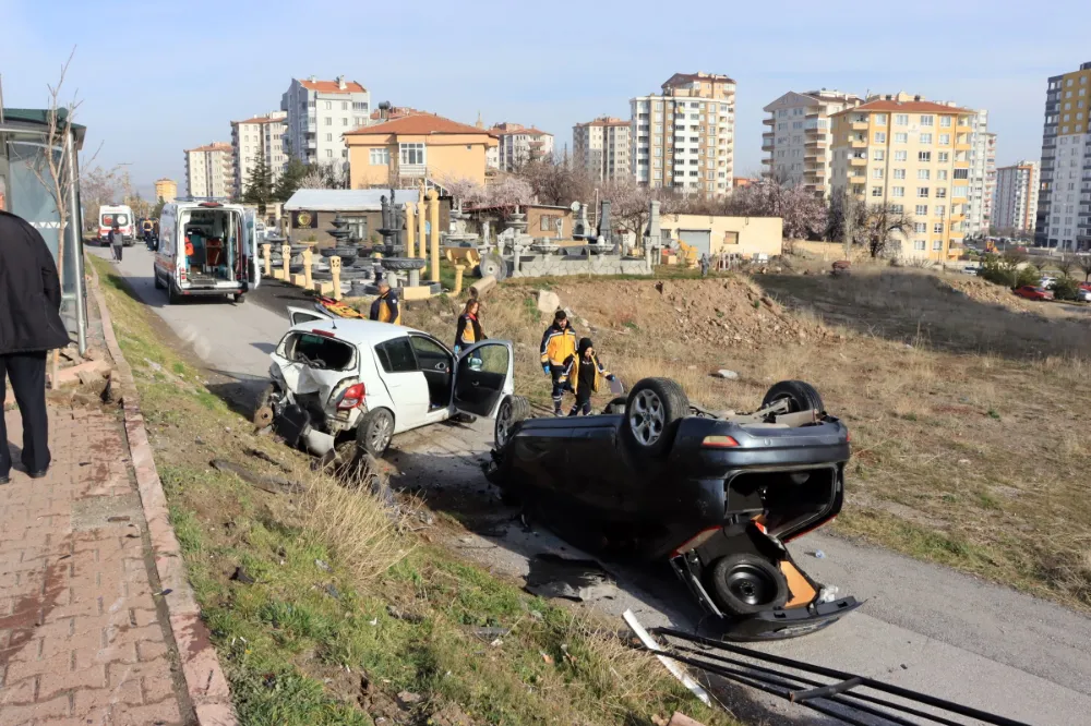 Öte yandan, 2 kişinin yaralandığı kaza güvenlik kamerasına yansıdı. Yolcu durağını ıska geçen otomobillerin yoldan çıkması ve kaza anında yaşanan panik saniye saniye kaydedildi.