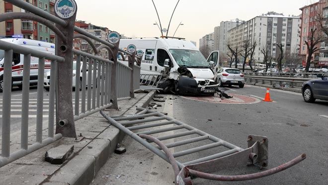 Fevzi Çakmak Mahallesi yaşanan kazada otomobile çarptıktan sonra bariyerlere giren ticari araçta bulunan 1 kişi yaralandı.