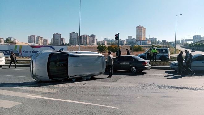 Kayseri'de otomobille çarpışan hafif ticari araç yan yattı. Kazada 1 kişi yaralandı.