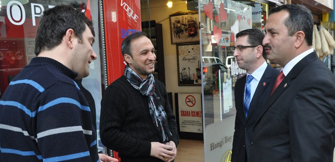 27 Mayıs Caddesi üzerinde bulunan esnafları tek tek ziyaret eden SP belediye başkan adayları, esnaflardan seçimler için destek istedi.