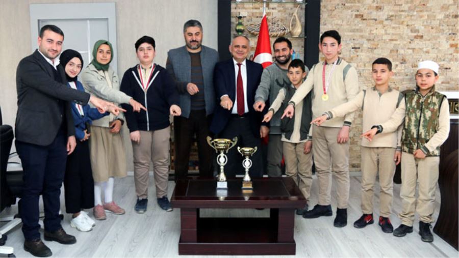Kabulde idareciler ve başarılı öğrencilerle bir arada olmaktan büyük mutluluk duyduğunu belirten Başkan Esat Öztürk, “İlçemizi, Kayseri’deki çeşitli yarışmalarda başarıyla temsil ettiniz. Aldığınız sonuçlardan dolayı sizleri ve öğretmenlerinizi tebrik ediyorum. Başarılarınızın devamı diliyorum” dedi. Başkan Öztürk, Yahyalı Belediyesi olarak eğitim camiasına önemli desteklerinin olduğunu, bu desteklerinin her zaman da devam edeceğini belirterek; “Hacı Hasan Efendi İmam Hatip Ortaokulumuz, ismine yakışır bir başarıyı ilçemize kazandırdı. Ben okul idarecilerimize, öğretmenlerimize ve öğrencilerimize teşekkür ediyorum. Yahyalımız Hacı Hasan Efendi Hz. ile markalaşmış bir ilçe. Manevi yönümüz ile Türkiye’de ve dünyada tanınıyoruz. Buradan marka olan büyüklerimizi rahmetle yâd ediyoruz. Dart sporunda il birincisi olduğunuz için sizlere yürekten teşekkür ediyorum. Ayrıca hem sağ, hem sol kol olmak üzere bilek güreşinde aldıkları başarılı sonuçlarla kupayı ilçemize getirdikleri için sizleri kucaklıyor, tebrik ediyorum. Bunların yanında Güzel Kuran Okuma ve Ezan Okuma yarışmalarında başarılı sonuçlar alan yavrularımıza şükranlarımı sunuyorum. İlçemize nice nice böyle güzel kupalar getirelim. Belediye olarak sizleri her zaman teşvik edecek, maddi ve manevi olarak da yanınızda olacağız. İlçemizi eğitimde de, bir çok spor dalında da iyi yerde görüyorum. İnşallah başarımızı giderek artıracağız.” diye konuştu.