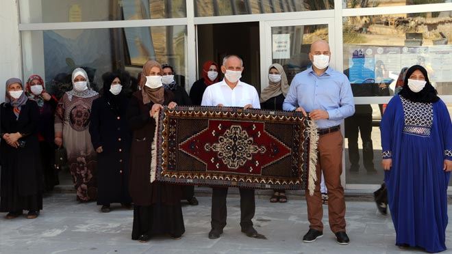 Yahyalı Belediye Başkanı Esat Öztürk, Kayseri İl Göç İdaresi Müdürü Ömer Taşçı ve Develi Sosyal Hizmetler Müdürü Sait Postallı’yla birlikte ilçede Avrupa Birliği finansörlüğünde açılan Yahyalı El Halısı dokuma kursunu ziyaret etti.