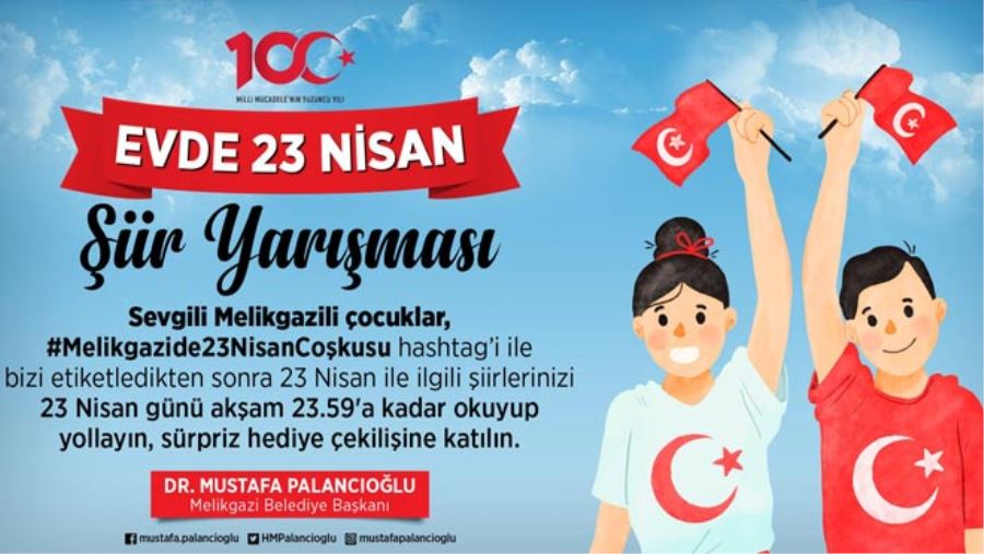 Başkan Palancıoğlu, yaptığı açıklamada “Sevgili Melikgazili çocuklar, #Melikgazide23NisanCoşkusu hashtag'i ile bizi etiketledikten sonra 23 Nisan ile ilgili şiirlerinizi 23 Nisan günü akşam 23:59'a kadar okuyup paylaşın sürpriz hediye çekilişine katılarak kazanan 100 çocuğumuzdan biri de siz olun” dedi.