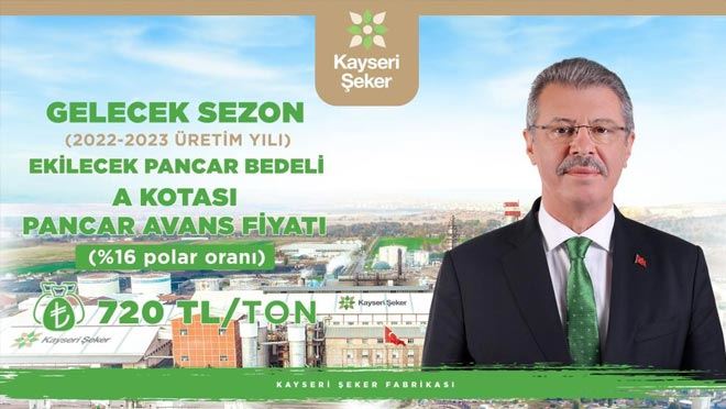 Kayseri Şeker, pancar üreticilerinin yükselen girdi maliyetlerini dikkate alarak, sürdürülebilir tarım ve çiftçinin gelirini artırma yolunda önemli bir hamle daha yaptı. 2022-2023 üretim yılı için, pancar avans fiyatını 16 polar pancar bedeline yüzde 71.42 oranında zam yaparak, 720 lira olarak belirledi. Konu ilgili değerlendirmede bulunan Kayseri Pancar Ekicileri Kooperatifi Yönetim Kurulu Başkanı Hüseyin Akay " Pancar üreticilerinin verimini ve gelirini artırmayı her zaman kurumsal hedefleri arasına koyan Kayseri Şeker, son günlerde artan girdi maliyetleri sonrasında pancar ekip ekmemekte tereddüt yaşayan üreticilere adeta ilaç oldu. Kayseri Pancar Ekicileri Kooperatifi Yönetim Kurulu Başkanı Hüseyin Akay liderliğinde Türkiye'de rol model haline gelen Kayseri Şeker, 2022-2023 üretim yılı için açıklanan pancar bedeli avans fiyatında da rekor kırdı. Şeker sektöründe öncü ve ilk uygulamalarıyla öne çıkan Kayseri Şeker, rekor avans fiyat açıklamasıyla son günlerde gübre, ilaç, mazot, elektrik başta olmak üzere girdi maliyetlerine gelen zamlar sonrasında üretim yapıp yapmama noktasında karar aşamasında bulunan üreticilere adeta 'can suyu' oldu. Şeker tarihinde ilk kez Kayseri Şeker tarafından avans niteliğinde açıklanan pancar bedelinin 720 TL'ye çıkması; pancar üreticilerinin önünü görmesi, planlama yapmasının yanında pancardan para kazanabileceğini şimdiden bilmesi açısından büyük önem taşıyor. Gün birlik, beraberlik günüdür. Gün yardımlaşma ve dayanışma günüdür. Pancar çiftçimizin hangi şartta üretim yaptığını çok iyi biliyoruz. Çiftçilerimizin üretimlerini artırması ve daha fazla kazanması için planlama yapıyoruz"