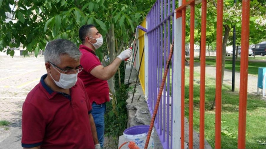 Kayseri'de bulunan Mehmet Sepici 60. Yıl Cumhuriyet İlkokulu müdürü, öğretmenler ve hizmetliler okulun demir parmaklıklarını boyayarak, pandemi dönüşünde okulu öğrenciler için hazırlamaya başladı.