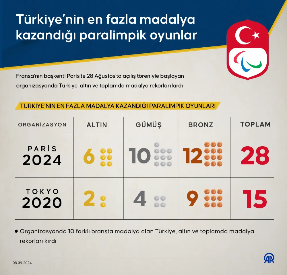 Birçok açıdan tarihe geçen organizasyonda 6 altın madalyayla Rio 2016'daki 3 altın madalyayı 2 kat geçen Türkiye, Tokyo 2020'de kazandığı toplam madalya sayısını da neredeyse 2'ye katladı ve oyunları 28 madalyayla bitirdi.