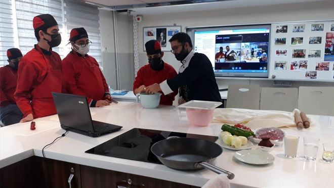Kayseri'de eğitimlerini sürdüren özel öğrenciler, 'Farklı İl Farklı Ülke Yemek Tarifleri' projesi kapsamında Paris'teki öğrencilere çevrimiçi ortamda meşhur Kayseri yağlaması yapmayı öğretti.