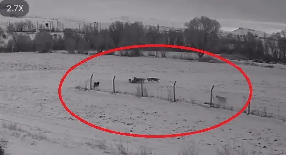 Kayseri’nin Pınarbaşı ilçesinde meydana gelen olayda, kurt sürüsünün saldırısına uğrayan bir köpek hayatını kaybetti. Saldırı anı çevredeki güvenlik kamerasına yansıdı.