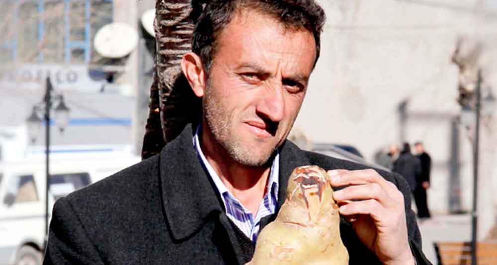 Kılıçaslan, tarlasına ektiği patateslerin hasadı sırasında makinesine taş takıldığını zannettiğini, bunun patates olduğunu görünce şaşkınlık yaşadığını söyledi.