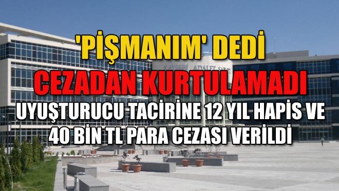 Kayseri'de uyuşturucu ticareti yapmak suçundan yargılanan sanık, 'Yaptıklarım için çok pişmanım' dedi ancak mahkeme heyeti sanığa 12 yıl hapis cezası ve 40 bin TL para cezası verdi.
