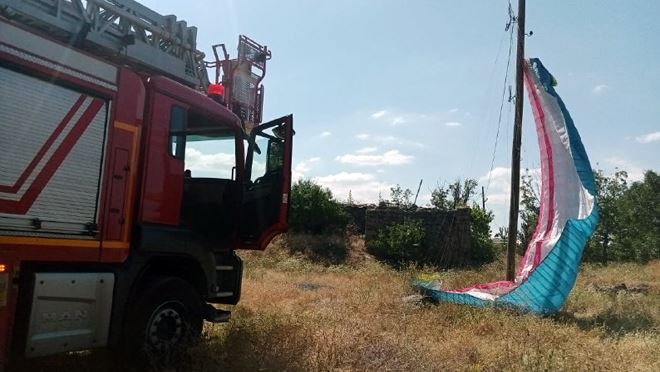 Edinilen bilgiye göre, ilçede bulunan Ali Dağı'ndan atlayan paraşütçü, yaklaşık 1 saat havada kaldıktan sonra inişe geçti. Paraşüt iniş alanını ıskalayan paraşütçü, boş arazide bulunan elektrik direğinde asılı kaldı. Paraşütçü kendi imkanları ile inerken, ihbar üzerine bölgeye polis, itfaiye ve sağlık ekipleri sevk edildi. Paraşüt pilotu kazayı yara almadan atlatırken, direkte asılı kalan paraşüt de ekipler tarafından indirildi.