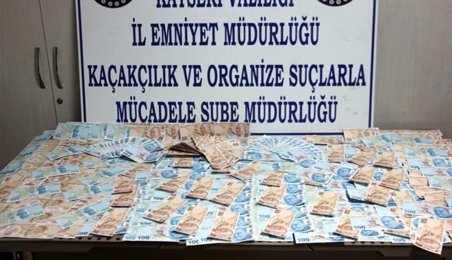 Edinilen bilgiye göre Kayseri Emniyet Müdürlüğü´ne bağlı Kaçakçılık ve Organize Suçlarla Mücadele Şube Müdürlüğü personeli tarafından piyasaya sahte para sürmek isteyen şahıslara yönelik operasyon yapıldı. Yapılan operasyonda piyasaya sahte para sürmek üzere olan S.S., K.Ç. ve İ.D. isimli şahıslar sahte olduğu değerlendirilen 168 adet 50 TL ile 321 adet 100 TL olmak üzere toplam 40 bin 500 TL ile yakalandı.