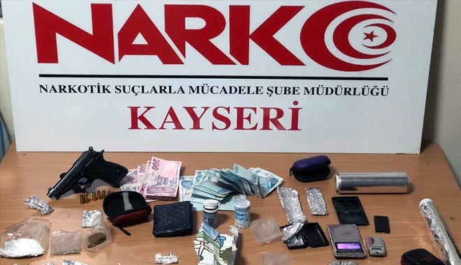 Kayseri´de Narkotik Suçlarla Mücadele Şube Müdürlüğü ekiplerinin dedektör köpekle birlikte yaptıkları operasyonda 6 kişi gözaltına alınırken çok sayıda uyuşturucu madde ve bir adet tabanca ele geçirildi.