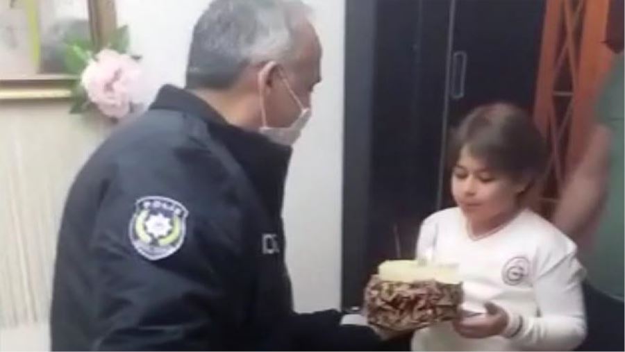 Kayseri'nin Talas ilçesinde dün akşam saatlerinde 112'yi arayan Mustafa Kayur, oğlu Emir Kağan'ın 10 yaşına girdiğini, sokağa çıkma yasağı olduğu için pasta alamadıklarını söyleyerek, polis ekiplerinden oğlu Eeir Kağan'a pasta almalarını talep etti. Bunun üzerine harekete geçen polis ekipleri, pasta alarak Emir Kağan'ın yaşadığı eve gitti. Dairenin önünde pastanın üzerindeki mumları yakan polis ekipleri, Emir Kağan'ın kapıyı açmasının doğum gününü kutlayan polis ekipleri, yaptıkları hareket ile gönüller fethetti.