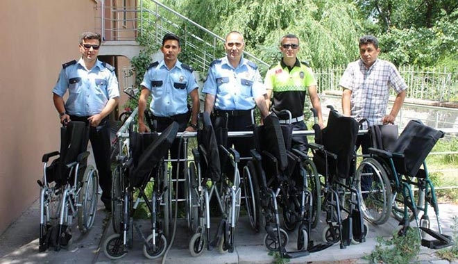 Tomarza İlçe Emniyet Müdürlüğü ile Kayseri Toplum Destekli Polislik Şube Müdürlüğü tarafından yürütülen proje kapsamında 6 engelliye tekerlekli sandalye hediye etti.