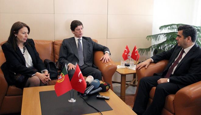 Bir dizi ziyaret ve görüşmelere gerçekleştirerek Portekiz ile ilimiz iş dünyası arasındaki iş hacmini geliştirmek üzere ilimize gelen Portekiz´in Ankara Büyükelçisi Jorge Cabral ve Ekonomi ve Ticaret Müsteşarı Celeste Mota Tezsezen Vali Orhan Düzgün, Büyükşehir Belediye Başkanı Mustafa Çelik ve Ticaret Odası Başkanı Mahmut Hiçyılmaz´ı makamında ziyaret ederek bir süre görüştü? Görüşmede karşılıklı olarak iki ülke arasındaki ticaret hacmini geliştirmenin yolları arandı?.